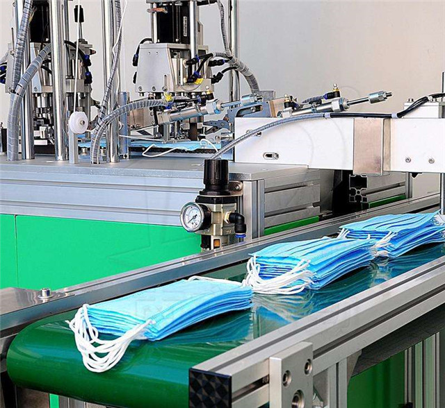 口罩機(jī)是將多層無紡布通過熱壓、折疊成型,超聲波焊接,廢料切除,耳帶鼻梁條焊接等工序制造出具有一定過濾性能的各種口罩,口罩設(shè)備不是單臺(tái)的機(jī)器,它需要多臺(tái)機(jī)器的配合完成各種不同的工序。